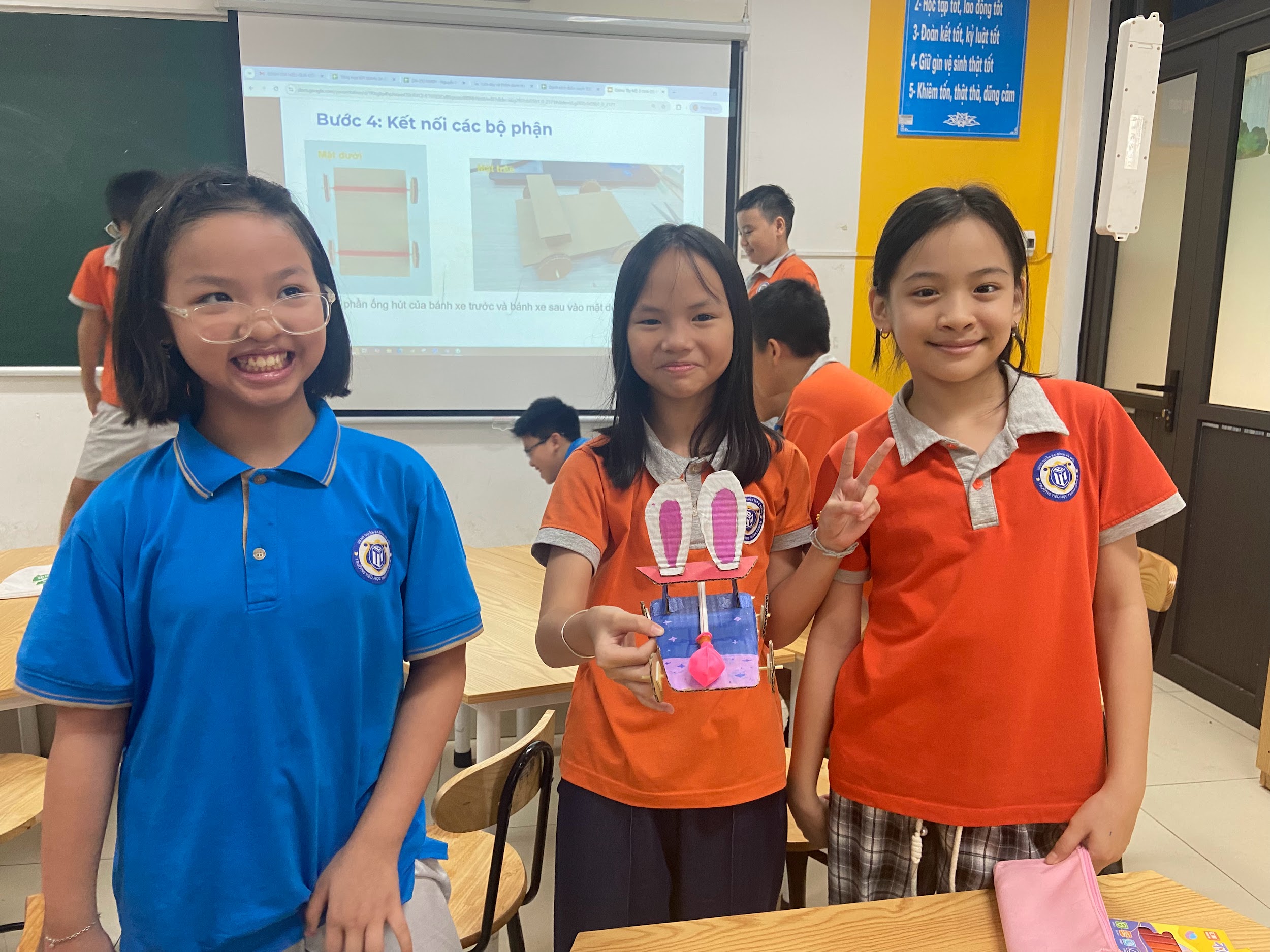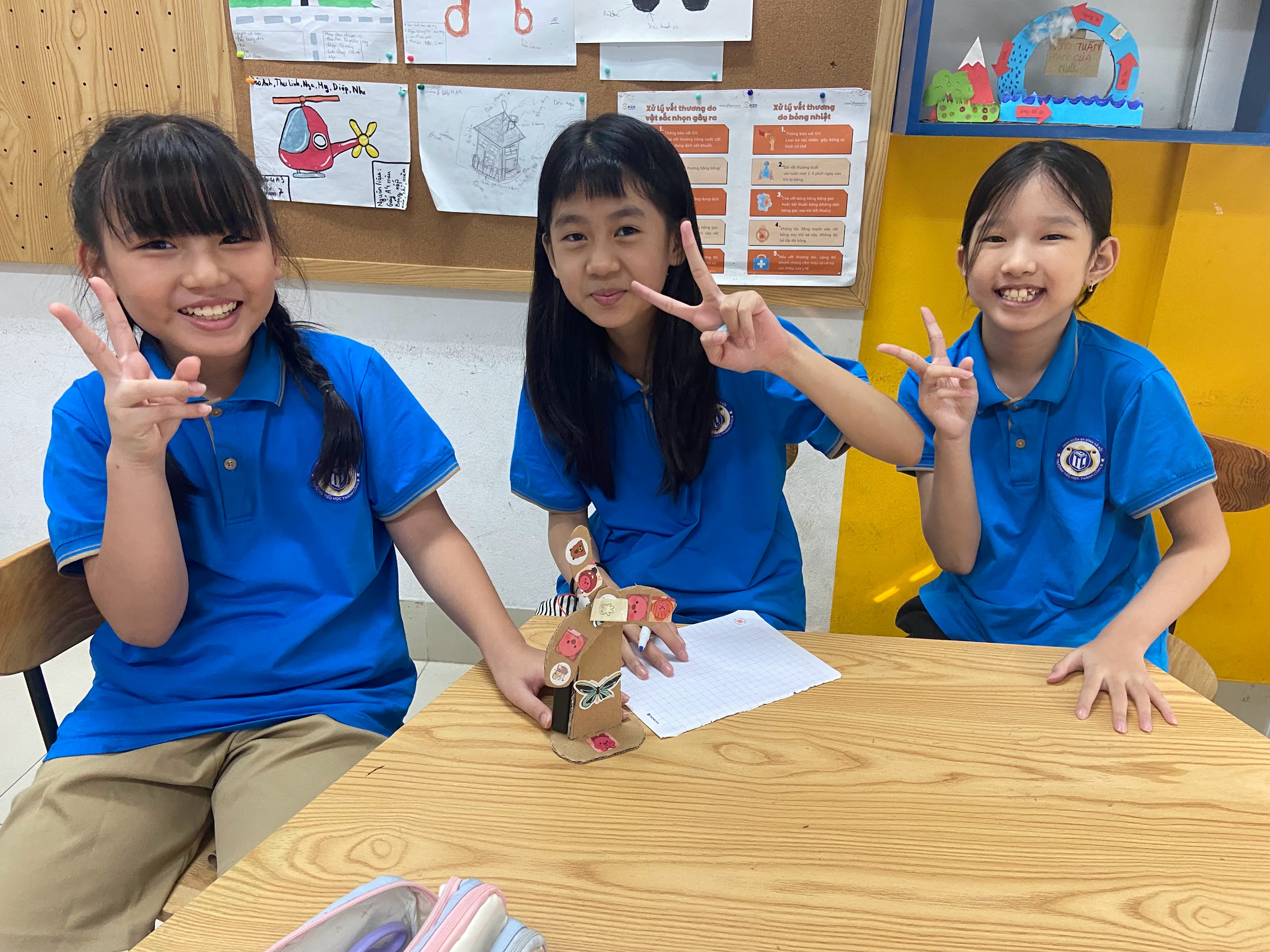 Thông qua quá trình thiết kế theo mô hình Design Thinking, học sinh rèn luyện tư duy sáng tạo, kiên trì với quy trình “thử nghiệm – sai – sửa” và chủ động hợp tác cùng bạn để hoàn thiện ý tưởng. Cuối mỗi dự án, các em tự tin thuyết trình sản phẩm, hình thành năng lực giải thích, phản biện và giao tiếp – những phẩm chất quan trọng của “nhà sáng chế nhí” trong thời đại công nghệ.