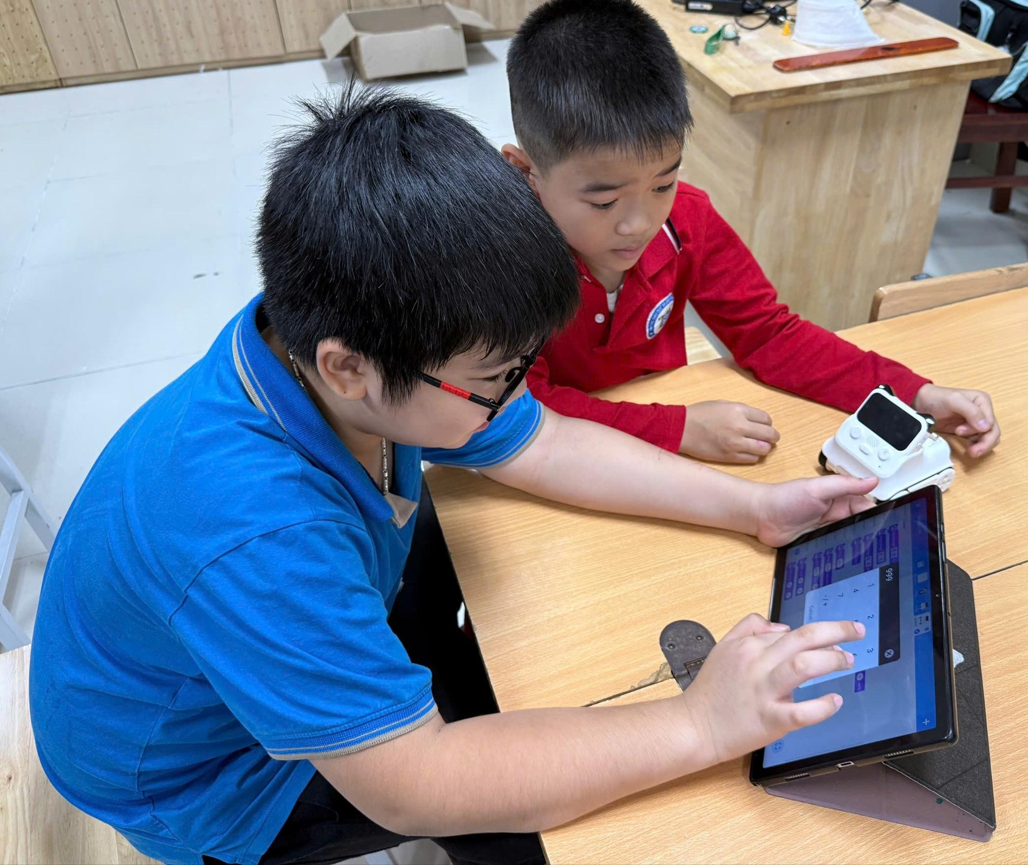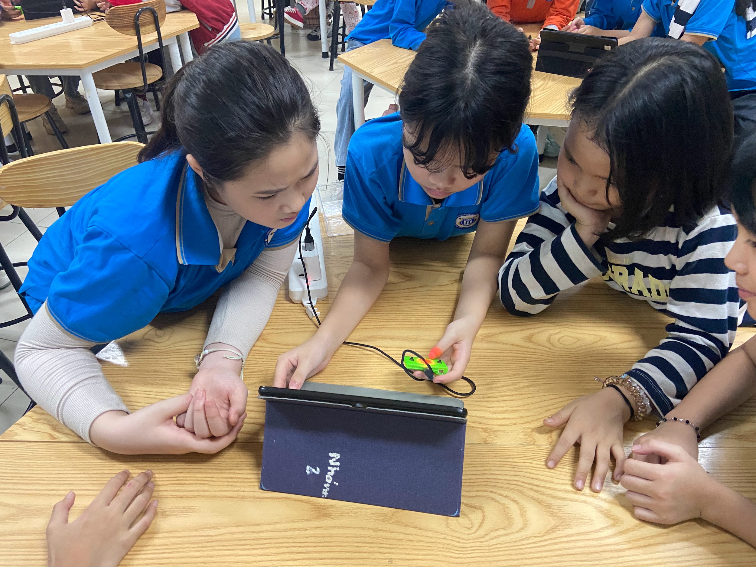 Thông qua việc thử các lệnh khác nhau và quan sát robot thực thi, học sinh hiểu rằng robot chỉ hoạt động chính xác khi mình “ra lệnh đúng”. Hoạt động này giúp các em rèn tư duy quan sát, suy luận, khả năng hợp tác nhóm và hình thành nền tảng vững chắc cho lập trình trong các khối lớp cao hơn.