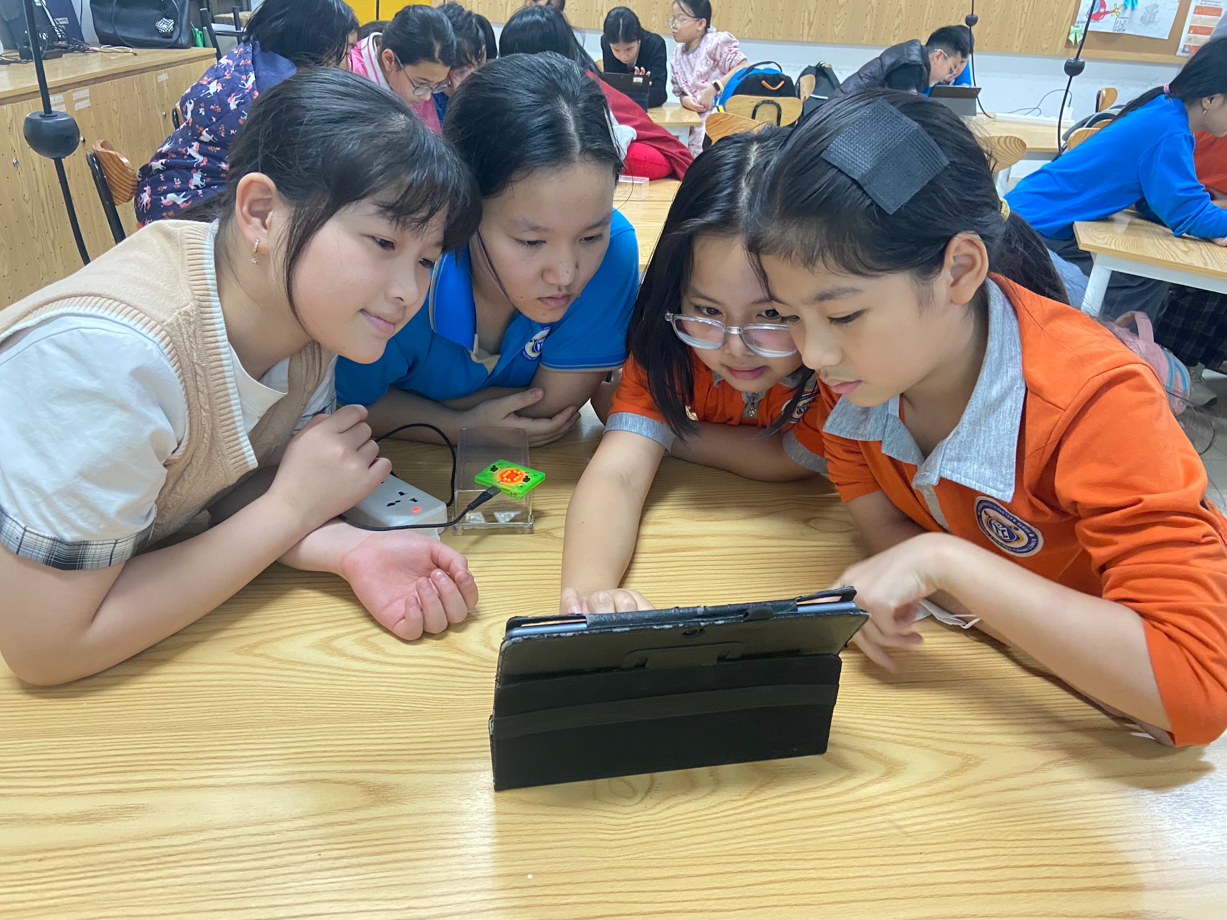 Hãy ngắm nhìn khoảnh khắc các bạn lớp 5 đang lập trình mạch Yolo:bit đầy thích thú!