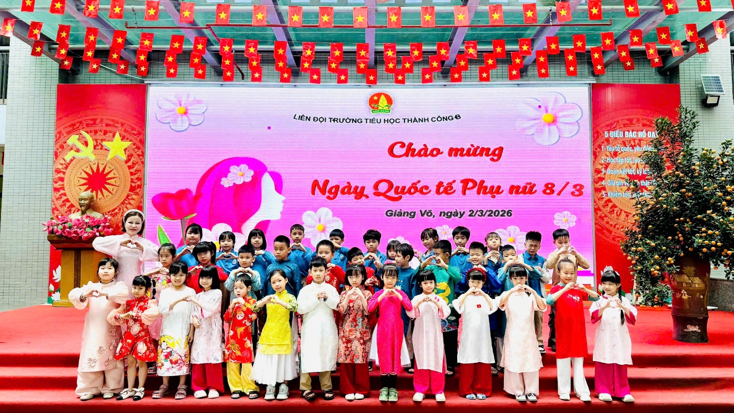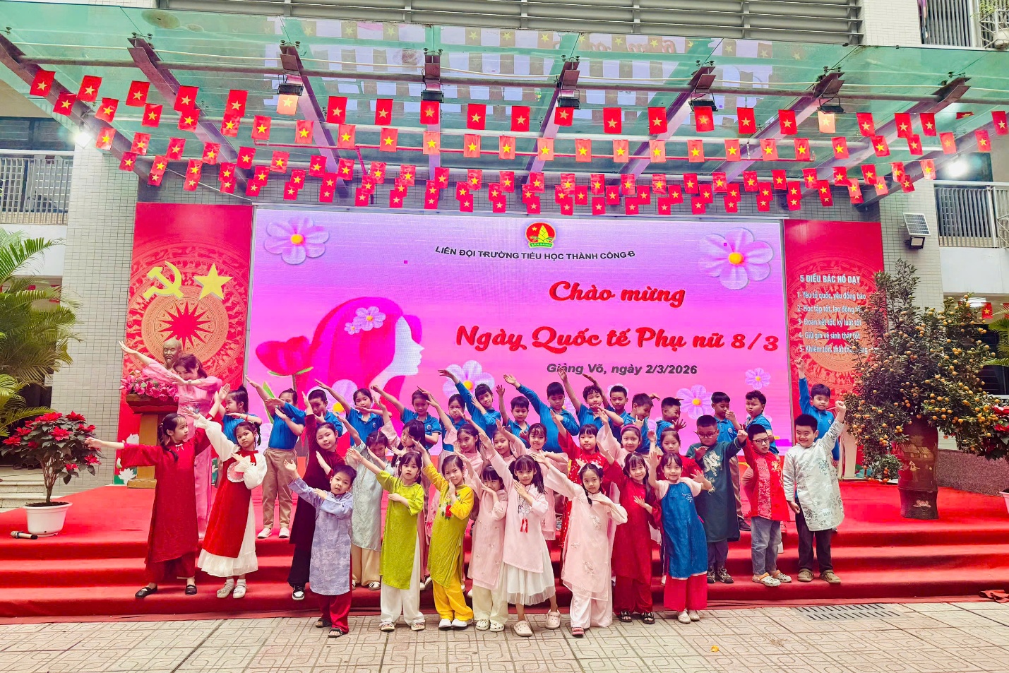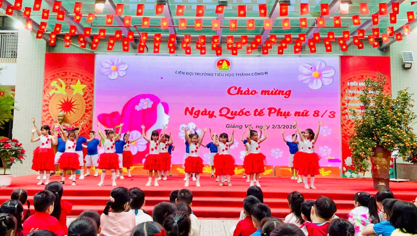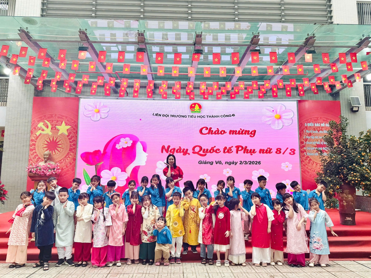 Nhằm giáo dục học sinh về ý nghĩa của Ngày Quốc tế Phụ nữ 8/3, đồng thời bồi dưỡng lòng biết ơn đối với bà, mẹ, cô giáo và những người phụ nữ thân yêu, sáng ngày 02/3/2026, Trường Tiểu học Thành Công B đã tổ chức chuỗi hoạt động ý nghĩa với sự tham gia của toàn thể học sinh và cán bộ, giáo viên nhà trường.