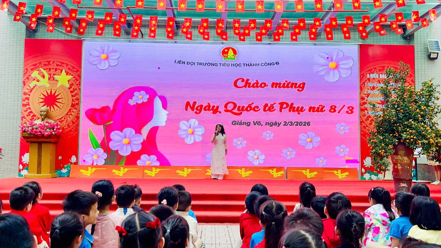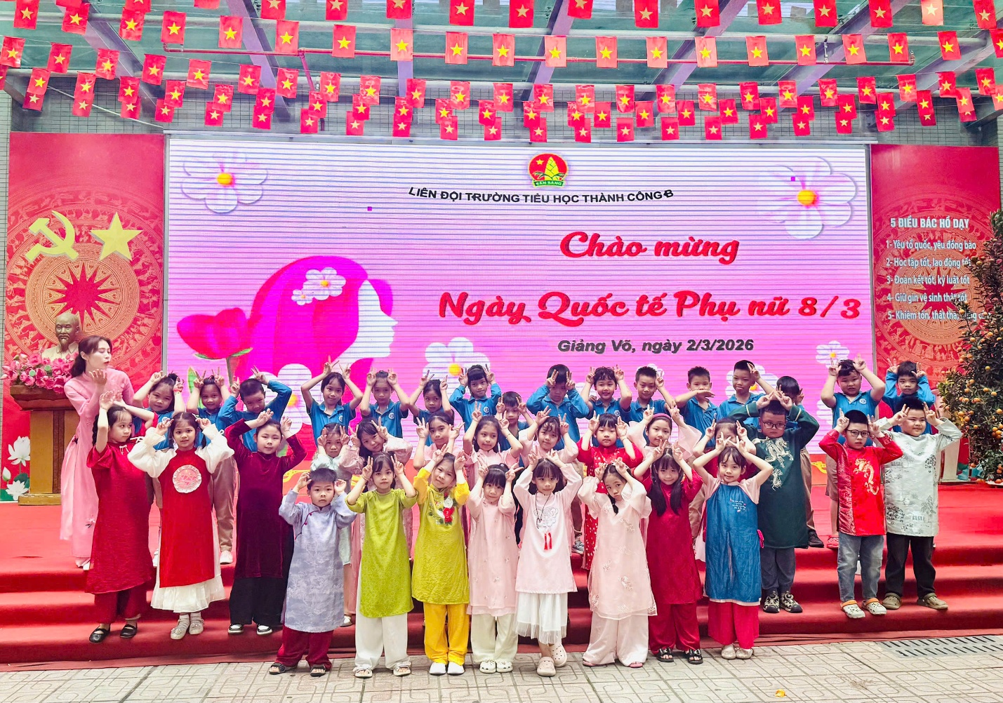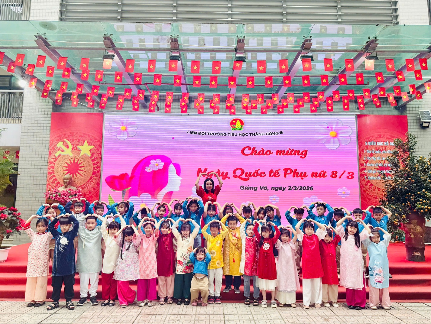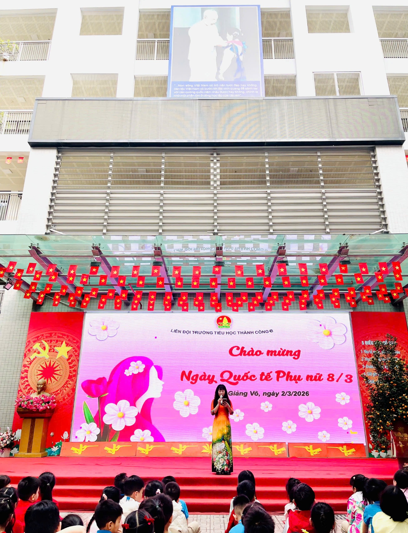 Nhằm giáo dục học sinh về ý nghĩa của Ngày Quốc tế Phụ nữ 8/3, đồng thời bồi dưỡng lòng biết ơn đối với bà, mẹ, cô giáo và những người phụ nữ thân yêu, sáng ngày 02/3/2026, Trường Tiểu học Thành Công B đã tổ chức chuỗi hoạt động ý nghĩa với sự tham gia của toàn thể học sinh và cán bộ, giáo viên nhà trường.