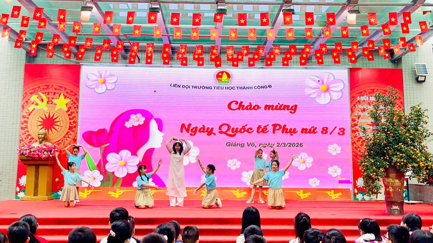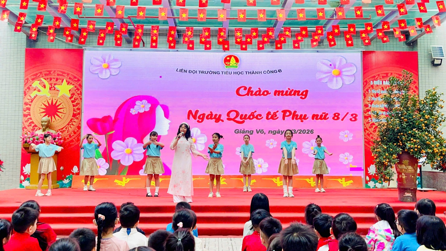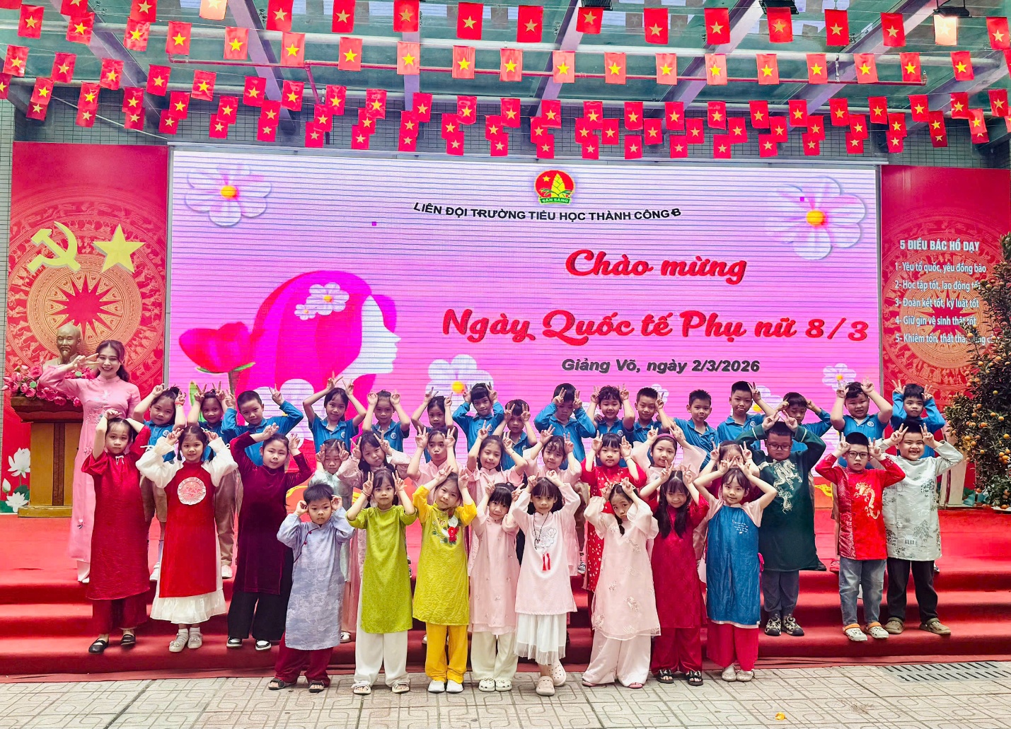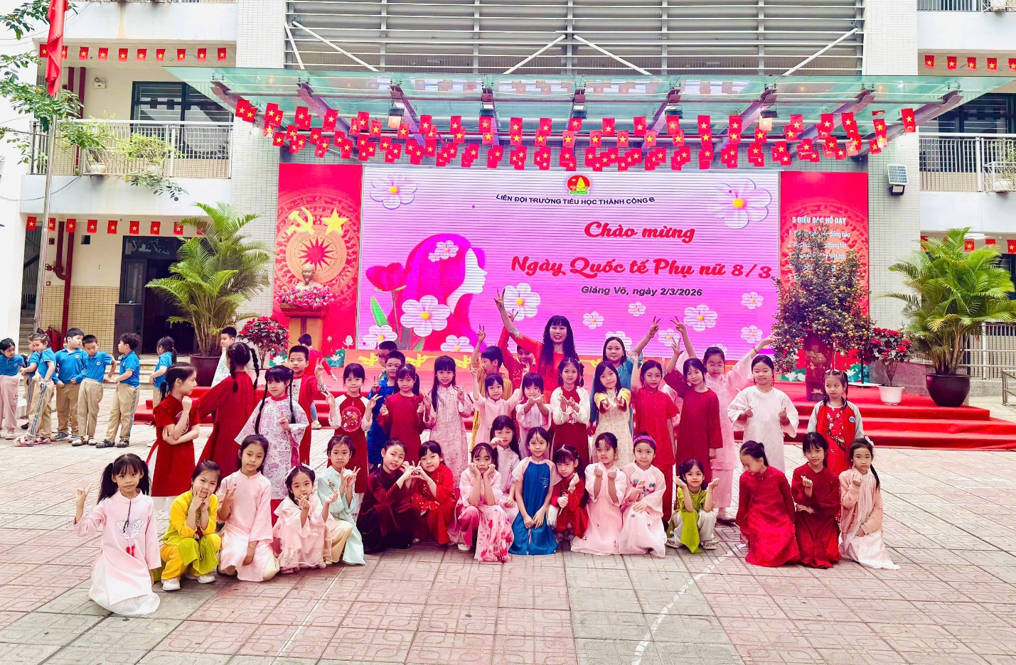 Nhằm giáo dục học sinh về ý nghĩa của Ngày Quốc tế Phụ nữ 8/3, đồng thời bồi dưỡng lòng biết ơn đối với bà, mẹ, cô giáo và những người phụ nữ thân yêu, sáng ngày 02/3/2026, Trường Tiểu học Thành Công B đã tổ chức chuỗi hoạt động ý nghĩa với sự tham gia của toàn thể học sinh và cán bộ, giáo viên nhà trường.