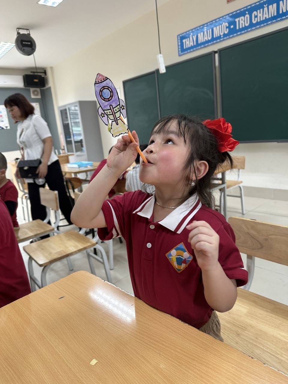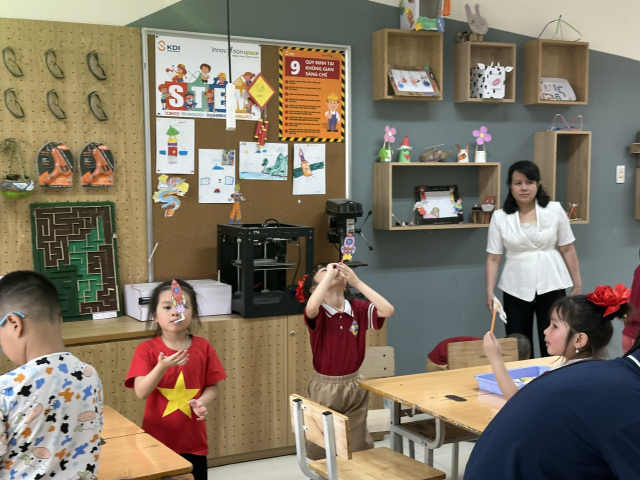 Các bạn rất hào hứng cùng nhau thực hiện những chiếc tên lửa bay rất mới lạ.