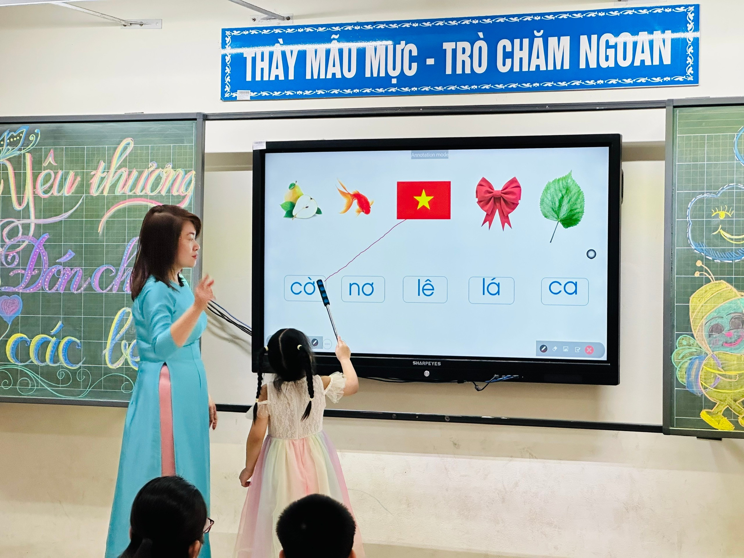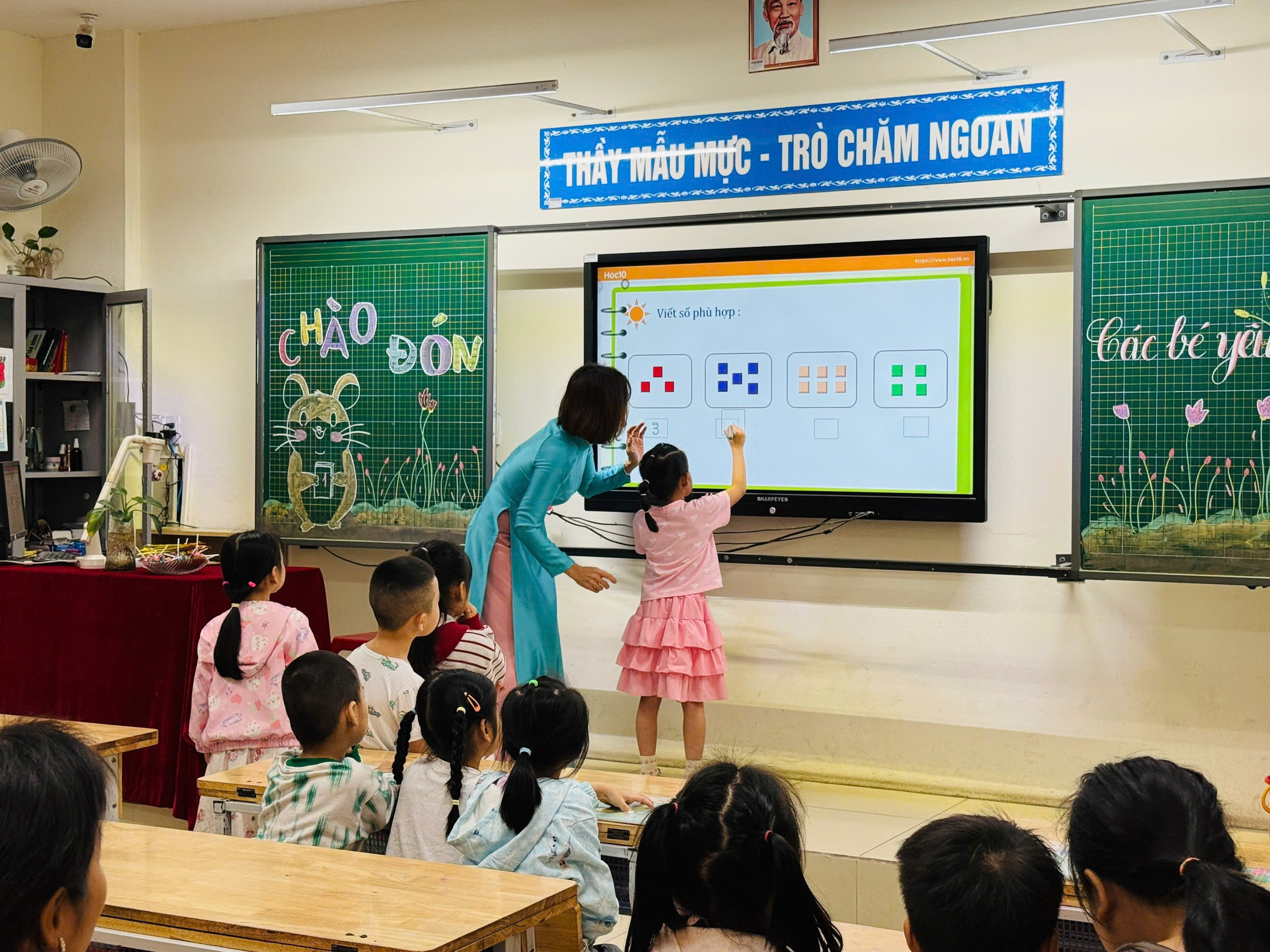 Các cô đã chia sẻ với phụ huynh những kỹ năng cần thiết để chuẩn bị cho con vào lớp 1, từ việc rèn nề nếp, thói quen học tập đến việc hỗ trợ con phát triển kỹ năng tự phục vụ và giao tiếp. Đặc biệt, phụ huynh và học sinh còn được tham gia các trò chơi tương tác trên nền tảng trực tuyến, thể hiện thế mạnh của nhà trường trong việc ứng dụng công nghệ số vào dạy học. Trong năm học 2026–2027, nhà trường sẽ tiếp tục đổi mới với hệ thống lớp học thông minh, tạo điều kiện để 100% học sinh được sử dụng iPad trong quá trình học tập, giúp nâng cao hiệu quả và hứng thú học tập cho học sinh.