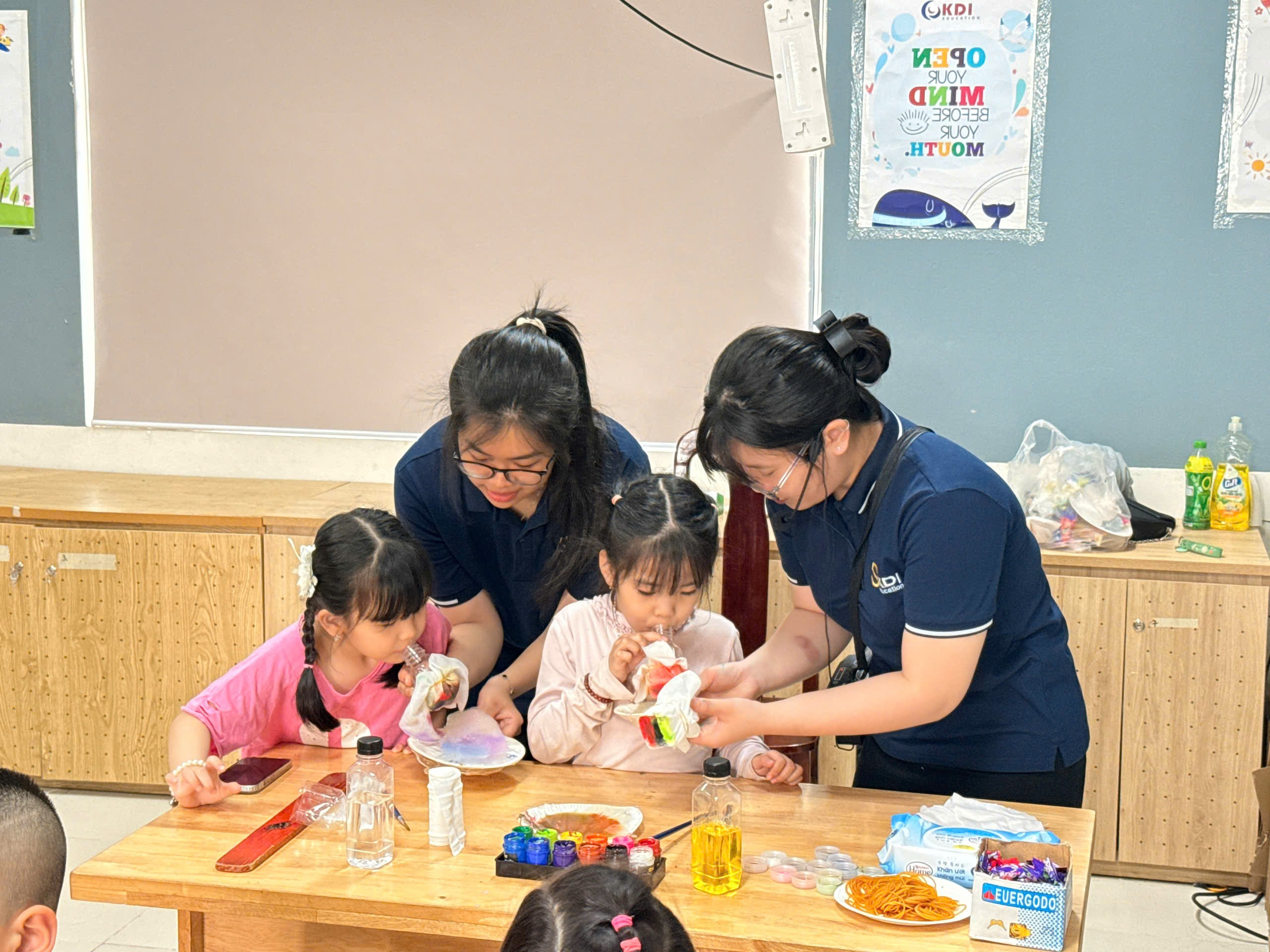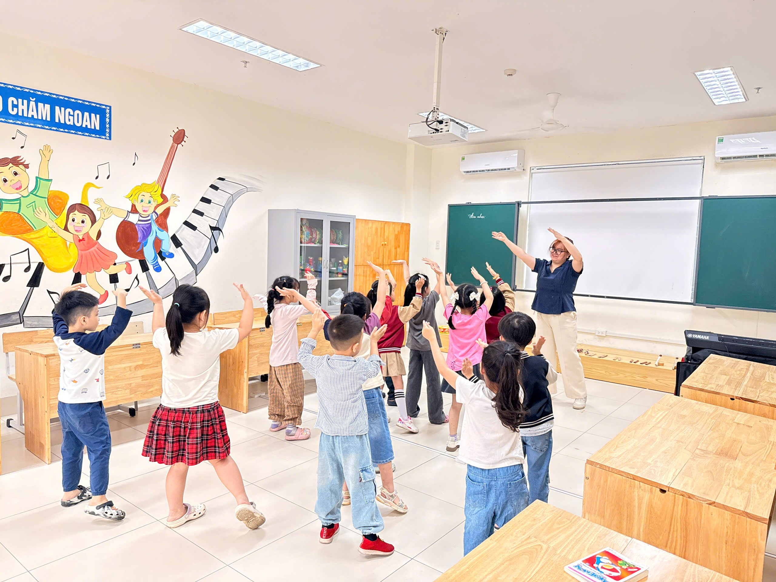 Một trong những phần được mong chờ nhất của ngày hội là hoạt động trải nghiệm thực tế tại các lớp học và phòng chức năng. Các em nhỏ được các cô giáo tận tình hướng dẫn tham quan lớp học, phòng Mĩ thuật, Âm nhạc, Tiếng Anh, STEM… Mỗi không gian đều mang đến những trải nghiệm mới mẻ, kích thích sự tò