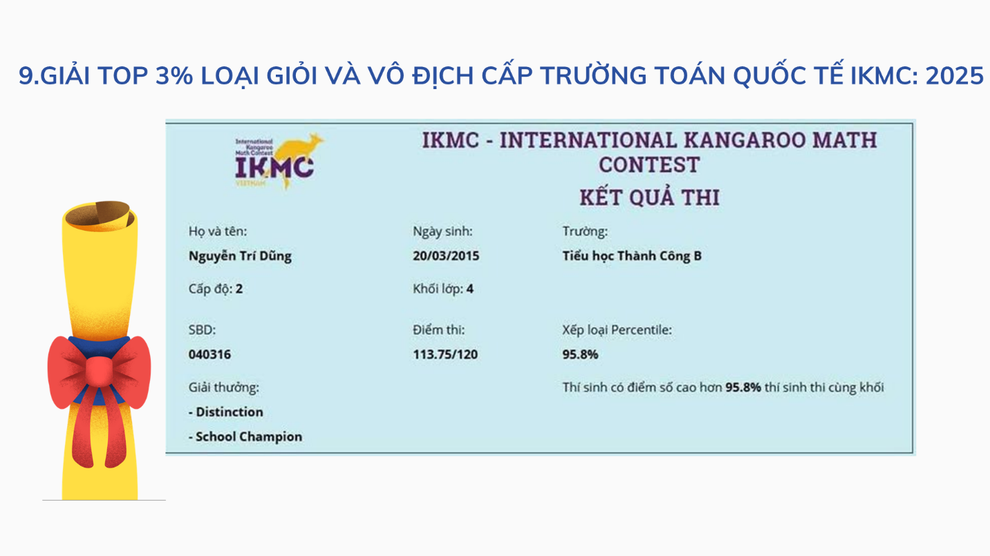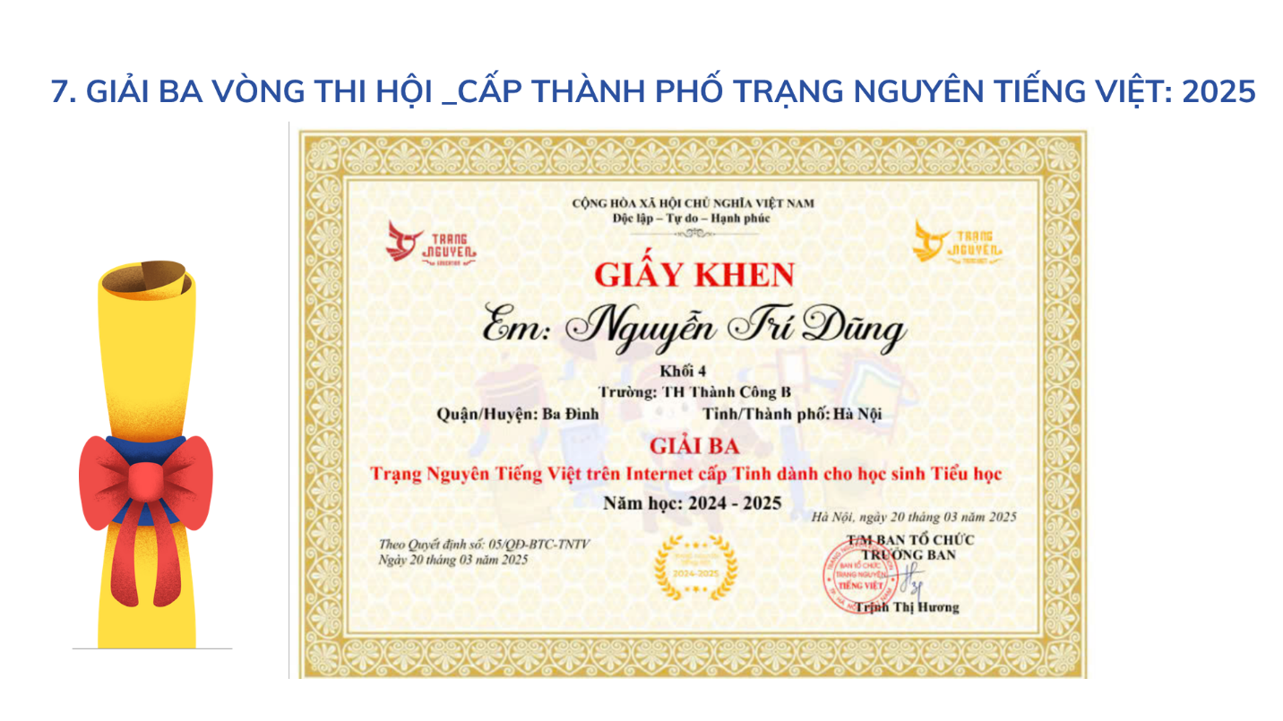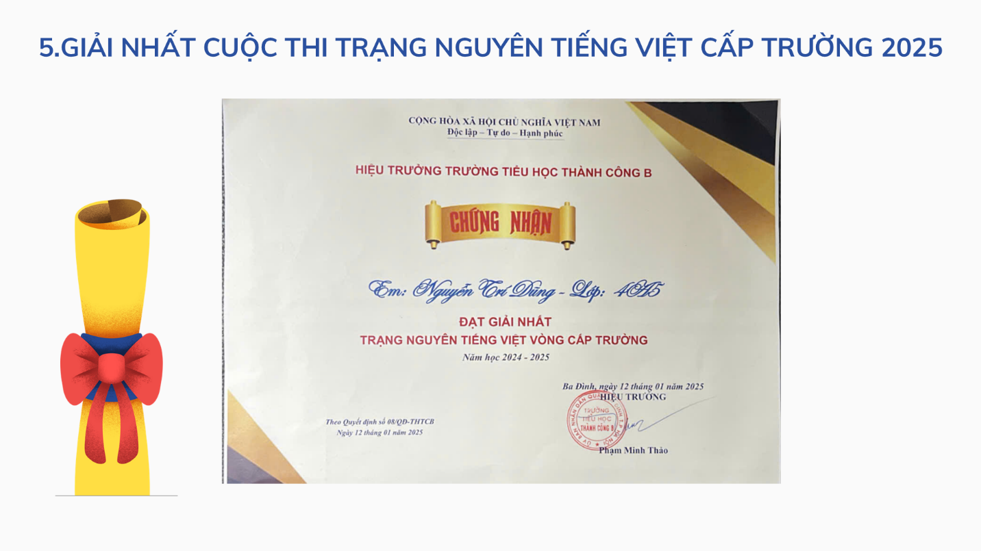 Dưới đây là một số thành tích của bạn trong năm học qua: