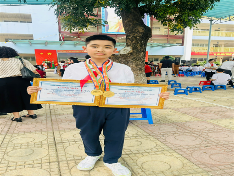 HS Nguyễn Hoàng Đình Anh 5A2 giành cả 2 giải Vàng Sân chơi Đấu trường Toán và Tiếng Anh